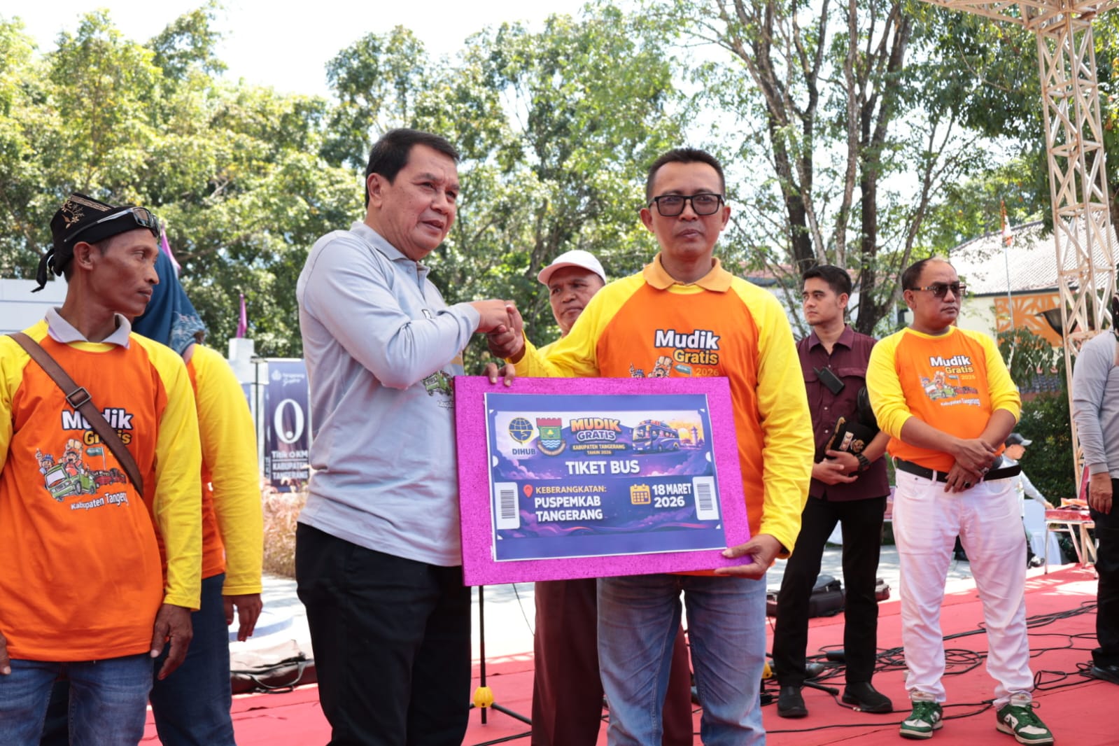 Pada kesempatan tersebut, Bupati juga menyampaikan ucapan Selamat Hari Raya Idulfitri 1447 Hijriah kepada seluruh peserta mudik gratis dan masyarakat Kabupaten Tangerang.